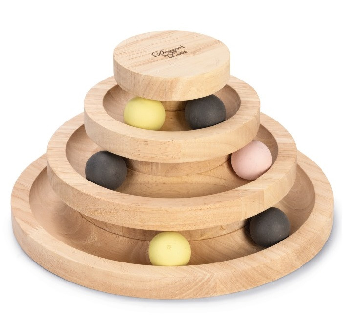 De Designed by Lotte Speeltoren Mia is het perfecte kattenspeelgoed. Deze speeltoren bevat maar liefst drie verdiepingen inclusief balletjes. Zodra jouw kat met zijn snuit of pootjes tegen de balletjes aantikt, zullen de balletjes door de gehele speeltoren gaan rollen. Jouw kat kan in zijn eentje met dit speelgoed spelen, maar samen spelen is natuurlijk ook mogelijk. Breng de balletjes met je hand in beweging zodat ze gaan rollen. Zal jouw vriendje ze kunnen volgen? De speeltoren is gemaakt van rubberhout en bevat natuurlijk tinten, hierdoor zal deze toren mooi staan in ieder interieur.