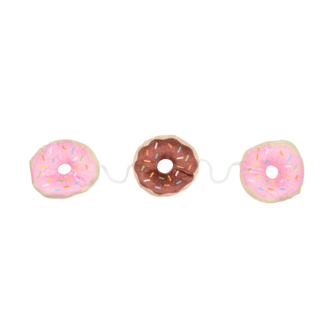 Fuzzyard Donuts is een trio van pluchen is een trio van pluchen knuffels die met een touwtje aan elkaar zijn vastgemaakt. Het zal alle coole katten en kittens urenlang vermaken. De kreukelgeluiden zullen onmiddellijk nieuwsgierigheid opwekken en het premium kattenkruid zorgt ervoor dat je kat terug blijft komen voor meer speelgenot.