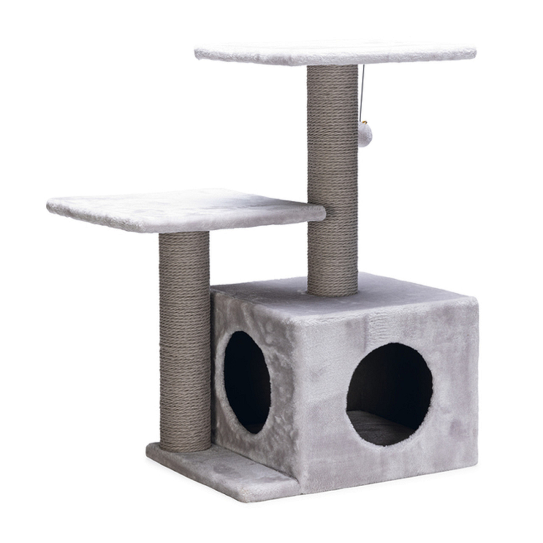 Spelen, krabben, relaxen en verstoppen, dat is wat jouw kat kan doen met dit Beeztees krabmeubel Serpa Fien. Deze prachtige krabpaal beschikt over twee ligplekken waarop jouw kat kan rusten. De twee krabstammen zijn omwikkeld met stevig papieren touw, een materiaalsoort waar jouw kat graag zijn of haar nagels in zet. Daarnaast heeft het als voordeel dat het krabgedeelte dezelfde kleur heeft als de rest van het krabmeubel. Hierdoor krijgt het krabmeubel Serpa Fien een luxe uitstraling. Het kattenhuis aan de onderzijde van het meubel is een ideale verstopplek voor jouw kat. Door de opening aan de voor- en zijkant kan jouw kat zijn of haar omgeving goed in de gaten blijven houden. De toevoeging van het pluchen speelballetje met belletje aan het elastische koord zorgt voor extra speelplezier.