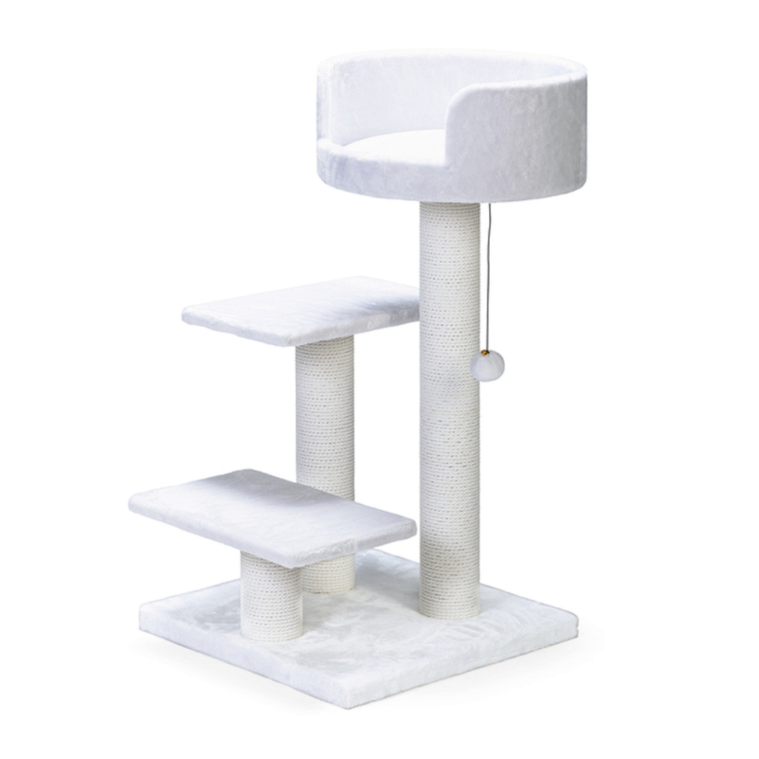 Spelen, krabben, relaxen en verstoppen, dat is wat jouw kat kan doen met dit Beeztees krabmeubel Serpa Figo. Dit prachtige meubel beschikt over twee ligplekken en een kattenmand waarop jouw kat kan rusten. De twee krabstammen zijn omwikkeld met stevig papieren touw, een materiaalsoort waar jouw kat graag zijn of haar nagels in zet. Daarnaast heeft het als voordeel dat het krabgedeelte dezelfde kleur heeft als de rest van het krabmeubel. Hierdoor krijgt het krabmeubel Serpa Figo een luxe uitstraling. De toevoeging van het pluchen speelballetje met belletje aan het elastische koord zorgt voor extra speelplezier.
