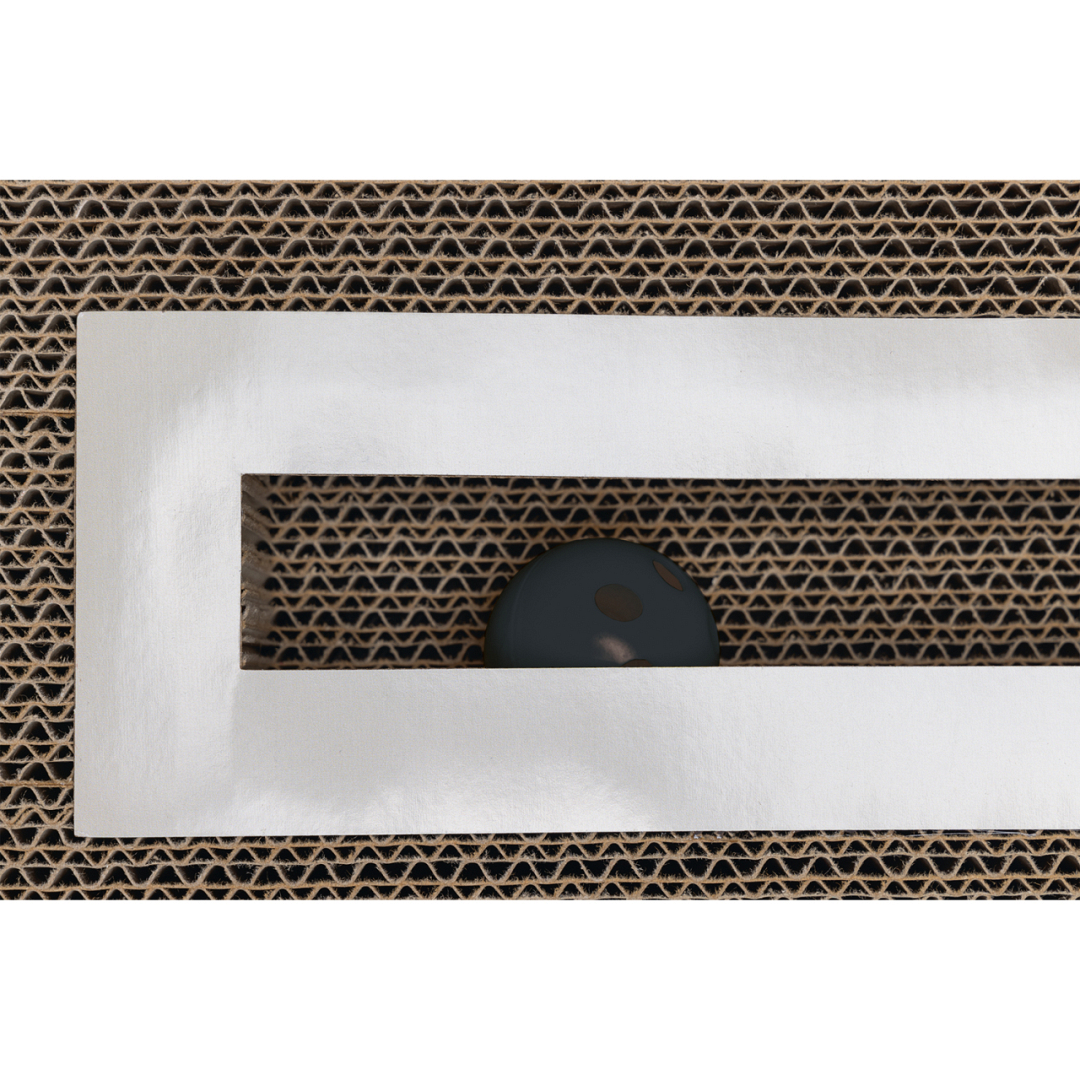 Kartonnen krabplank met speelballetje en kattenkruid. Voorziet in de natuurlijke krabbehoefte van jouw kat.