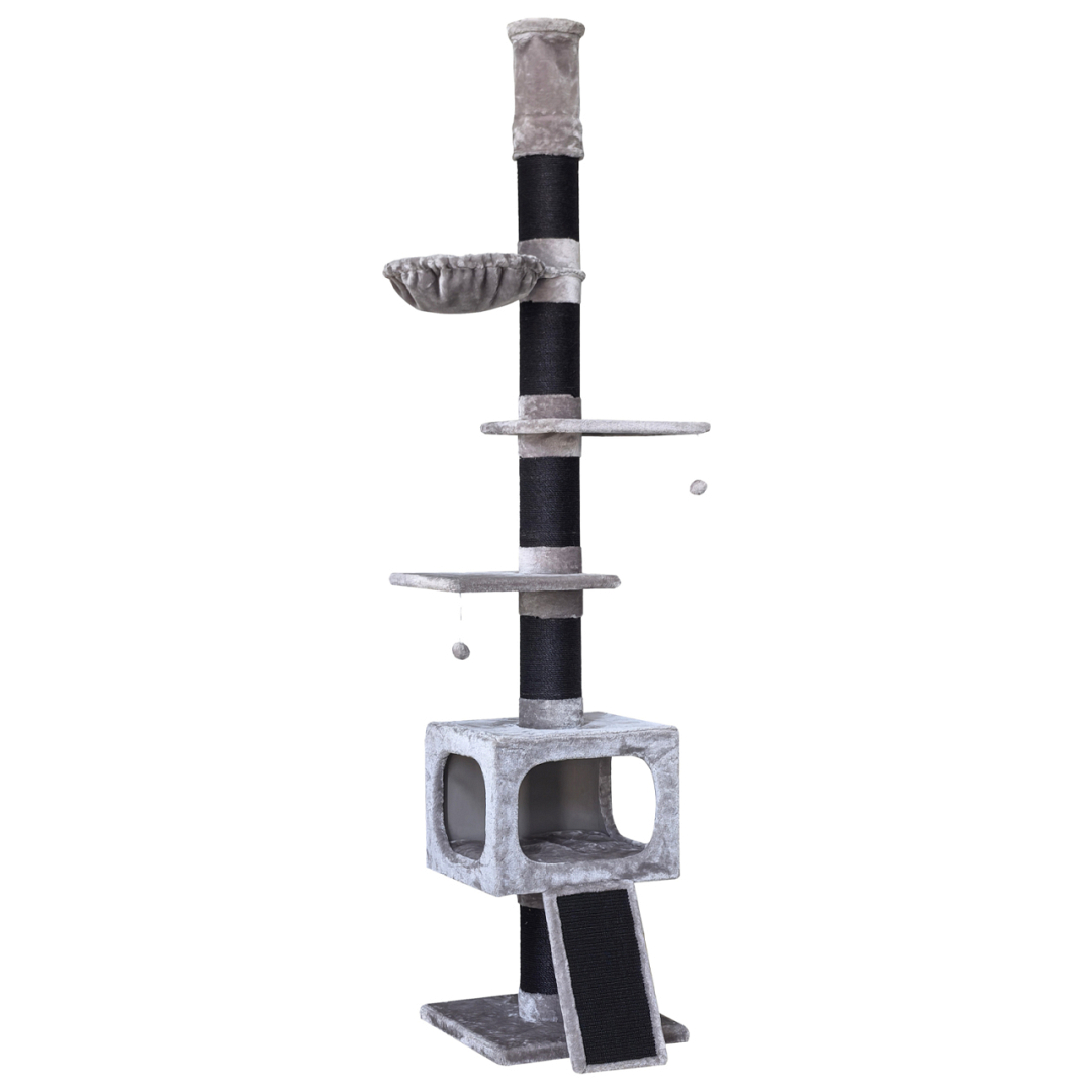 De Titano beschikt over meerdere plateaus, een comfortabele ligplaats en een ruim verblijf waar jouw kat zich heerlijk kan terugtrekken. Deze krabpaal beschikt over verschillende balletjes aan een elastiekje waar je kat naar hartelust mee kan spelen. Een handig trapje leidt naar het verblijf, waardoor ook oudere of minder atletische katten er eenvoudig in kunnen klimmen. Daarnaast zorgen de plateaus en het hangmat, verdeeld over vijf etages, voor een uitstekend uitzichtpunt waar je kat kan ontspannen en alles in de gaten kan houden. Dankzij de flexibele plaatsing van de plateaus kun je de krabpaal zo instellen dat jouw kat veilig en comfortabel naar boven kan klimmen.