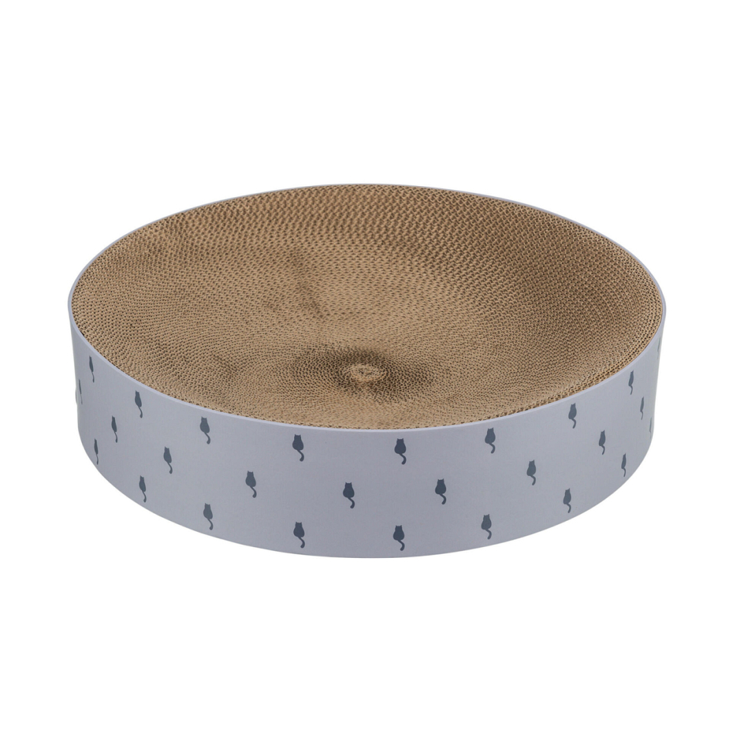 Ronde kartonnen krabmand voorzien van kattenkruid. Krabplank en mand in één.
