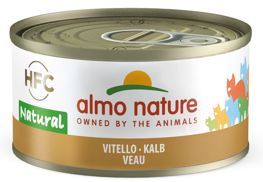 Almo Nature kattenvoer HFC Natural kalf is een aanvullend natvoer voor volwassen katten en heeft een onweerstaanbare smaak door het hoge percentage aan vlees. Alle natvoer recepten zijn bereid met natuurlijke, verse kip die van oorsprong geschikt is voor menselijke consumptie. Hierbij wordt dezelfde kwaliteit ingrediënten gebruikt als die zijn toegevoegd aan voeding voor mensen. De conservering vindt plaats in de eigen kookbouillon, dit zorgt ervoor dat voedingsstoffen en smaak behouden blijven.