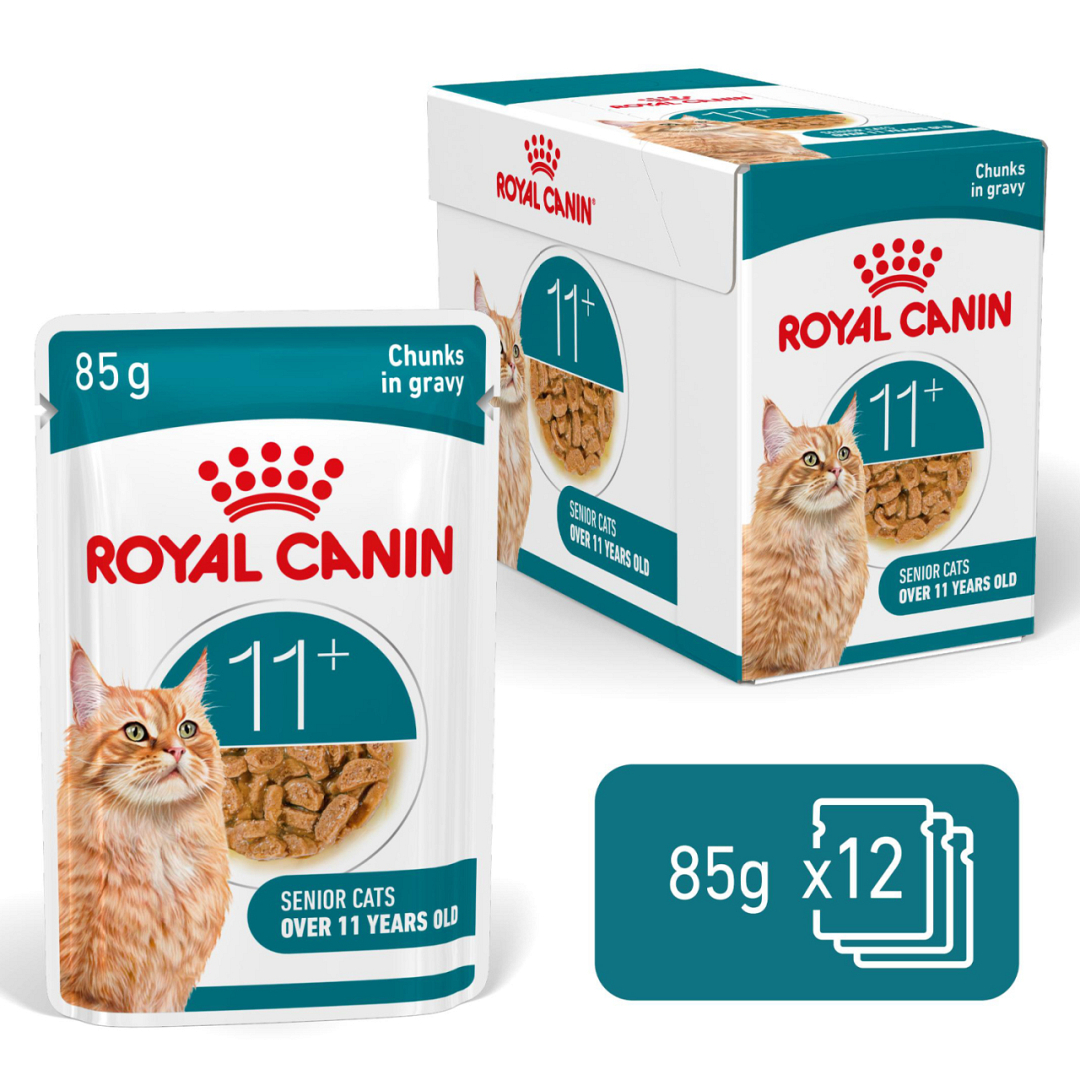Royal Canin kattenvoer Ageing 11+ brokjes in saus is speciaal ontwikkeld voor en getest op senior katten. De textuur is makkelijk te kauwen voor een aangename voedingservaring.