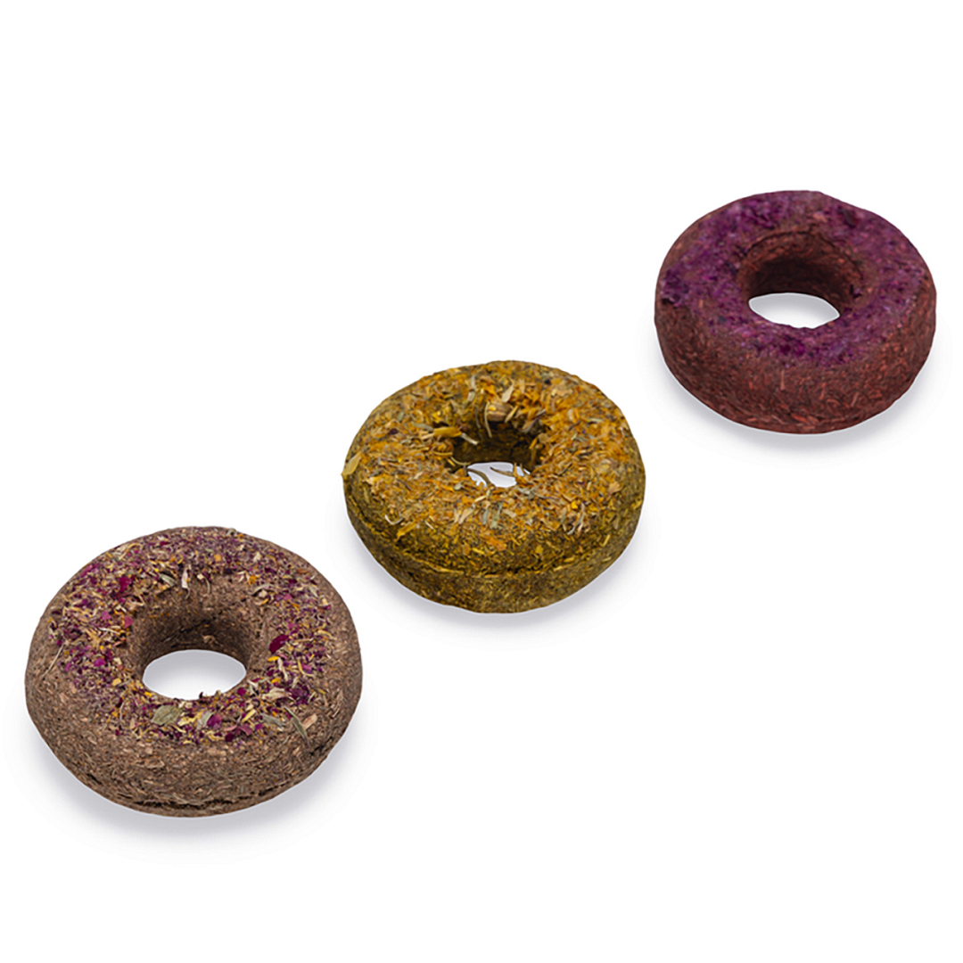 Laat jouw knaagdier of konijn smullen van deze overheerlijke havergras donut. Deze 100% natuurlijke snack is erg smaakvol. Doordat het hooi geperst is tot een donut, zal jouw huisdier flink moeten knagen om de donut op te eten. Dit gaat verveling tegen in het hok of de ren en zorgt er bovendien voor dat de tanden en kiezen verzorgd worden. Omdat de tanden van knaagdieren en konijnen altijd doorgroeien moet jouw dier regelmatig wat te knagen hebben zodat de tanden en kiezen niet te lang worden en scheef gaan groeien. Kortom, met deze Beeztees Havergras Donut kom je jouw knaagdier of konijn tegemoet in zijn of haar natuurlijke knaaggedrag met een smakelijke traktatie!