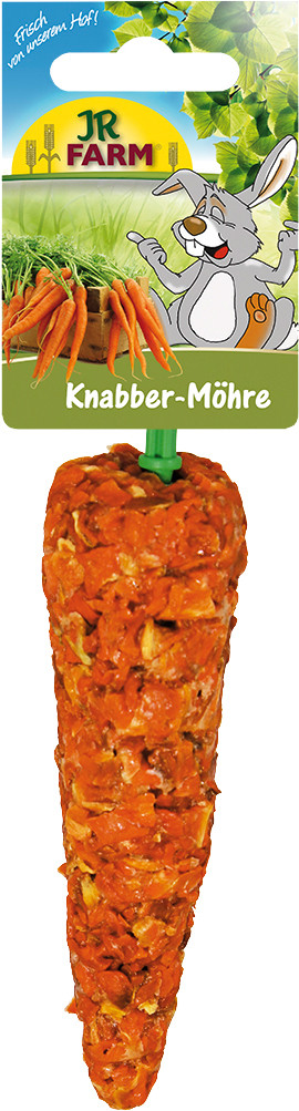 De JR Farm knaagwortel zorgt voor eindeloos knaagplezier dankzij lekkere geperste wortelblokjes om op te hangen. Met tal van vitamines!