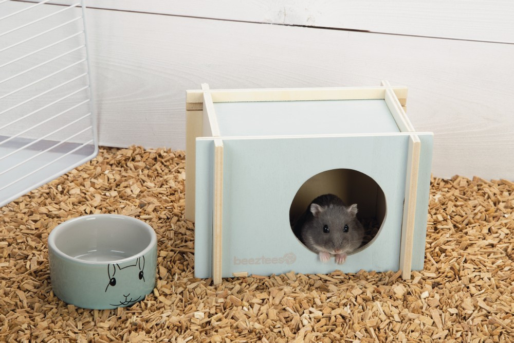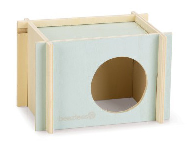 Het Beeztees knaagdierhuisje Bildup is een fijn huisje van hout voor je knaagdier. Door het gebruikte hout en zachte pastel kleuren, staat deze ook nog eens heel mooi in de kooi. Het knaagdierhuisje is eenvoudig in elkaar te zetten, door de verschillende onderdelen in elkaar te schuiven.