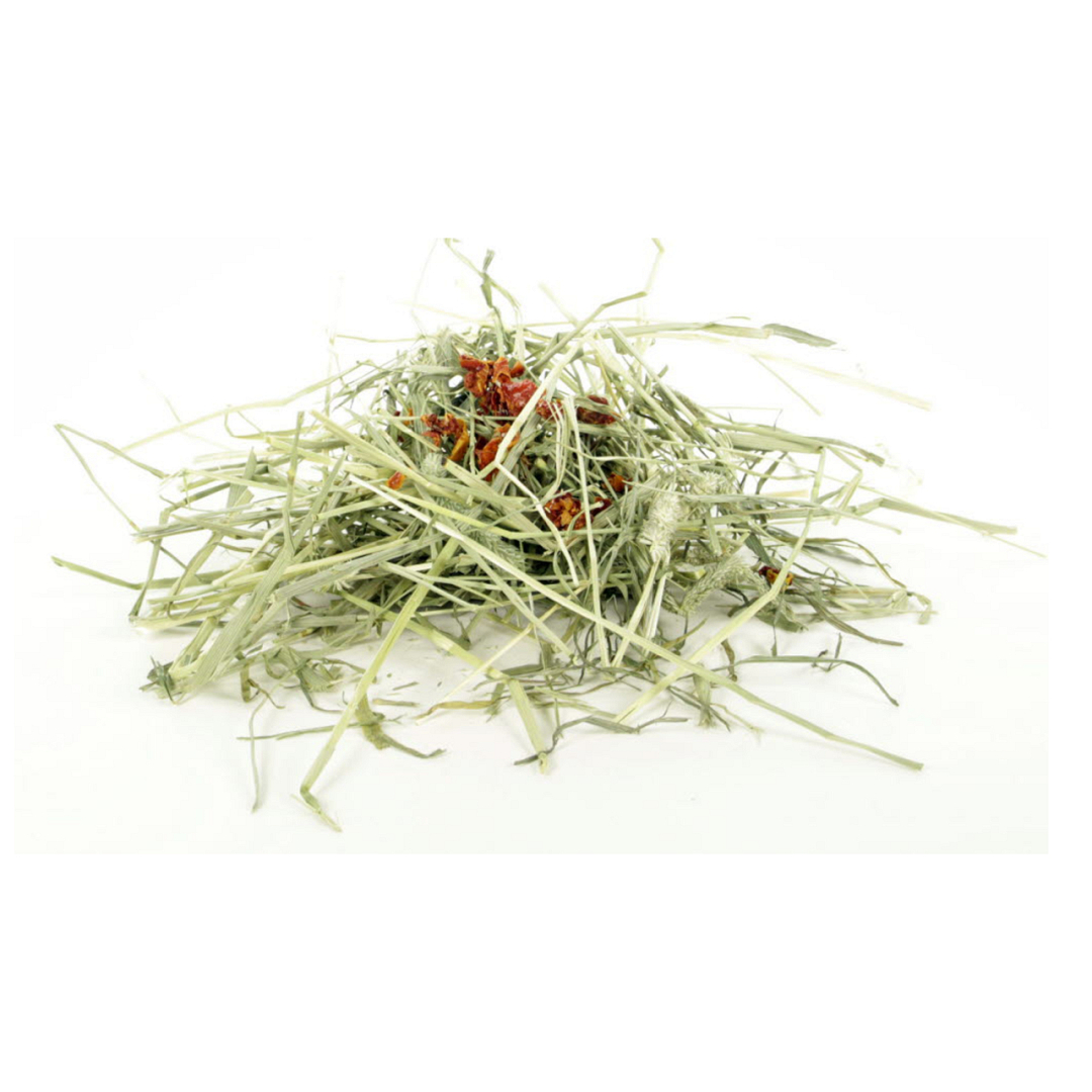 Zeer smakelijk en groen hooi voor jouw konijn of knaagdier. Verrijkt met tomaat en weegbree.