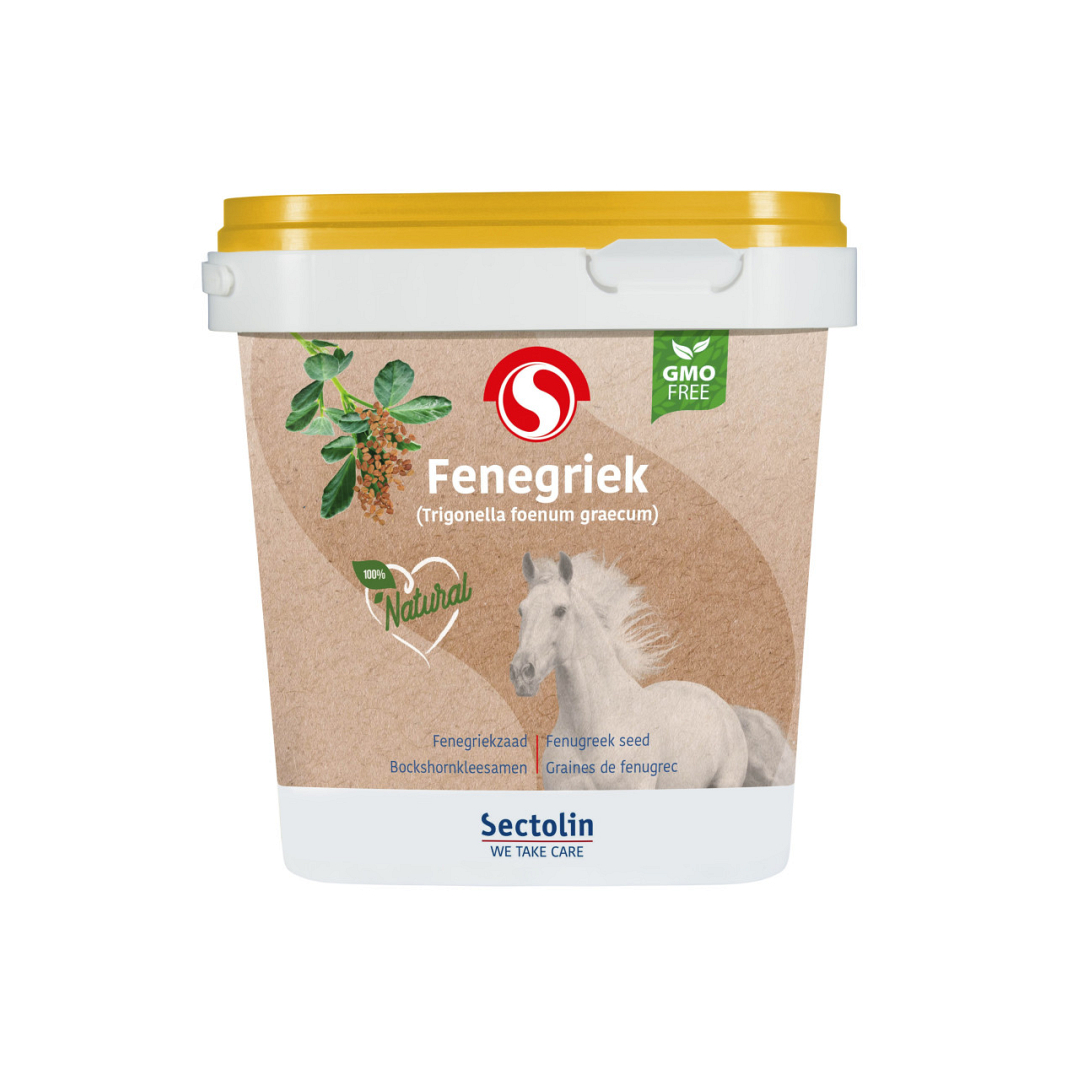 Sectolin Fenegriek is een voedermiddel voor paarden. Fenegriek of foenegriek is rijk aan vezels, eiwitten, vitaminen en essentiële aminozuren en werkt ter ondersteuning van de algemene weerstand. Fenegriek stimuleert de eetlust bij paarden en ondersteunt de luchtwegen en het maagdarmstelsel.