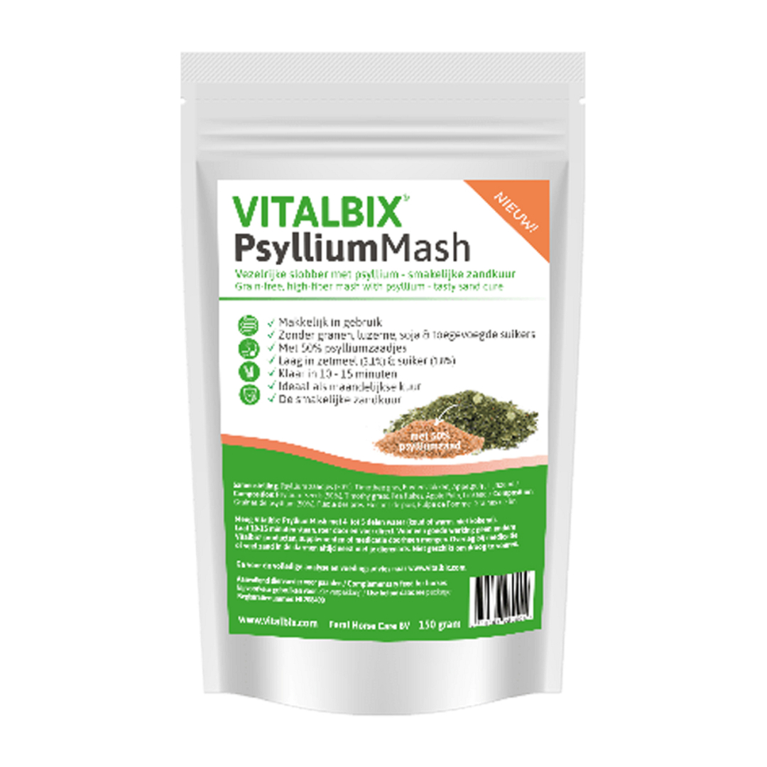 Vitalbix PsylliumMash is een gezonde slobber met 50% psylliumzaadjes. Het is een unieke slobber om op een eenvoudige manier een (maandelijkse) zandkuur te geven, geschikt voor ieder paard.