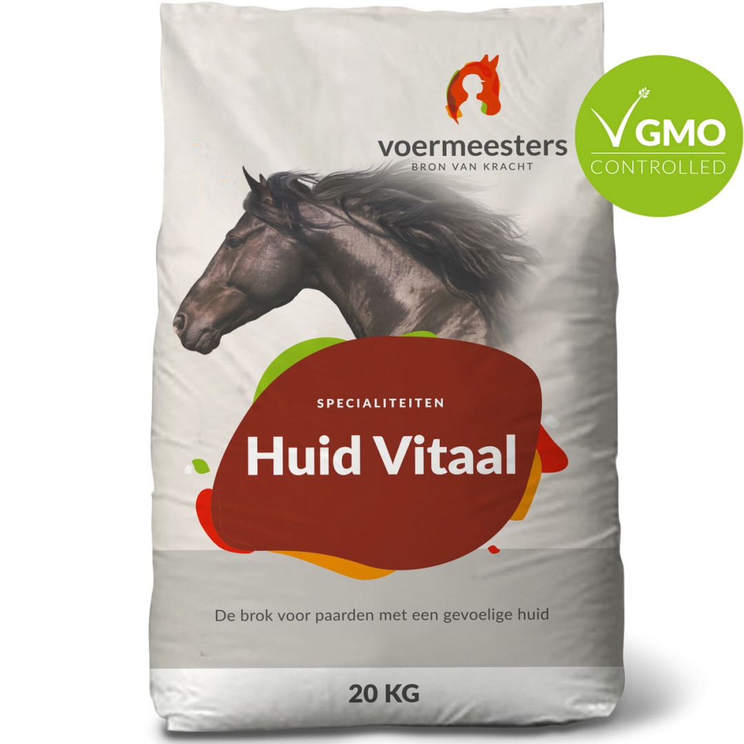 Voermeesters Huid Vitaal is speciaal ontwikkeld voor paarden met een overgevoelige huid. Vaak kunnen dergelijke klachten verminderen door een passend rantsoen. Deze brok bevat onder andere een hoog aandeel functionele vezels, extra biotine, en essentiële vitaminen, mineralen en vetzuren om de huid te ondersteunen.