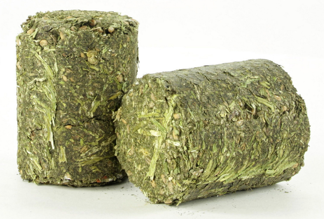 Het pikblok stimuleert het natuurlijk foerageer- en pikgedrag. Met luzerne dat de spijsvertering bevordert.