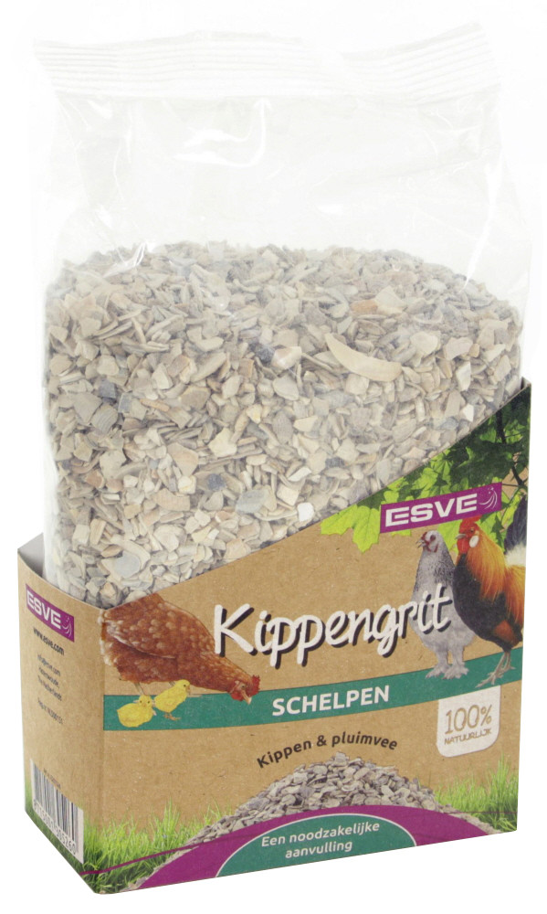 ESVE Kippengrit is een essentiëel supplement voor de mineralenhuishouding van een kip. Vooral voor leggende kippen is het extra belangrijk om de kalk in het lichaam aan te vullen, maar ook tijdens de rui een onmisbaar supplement.