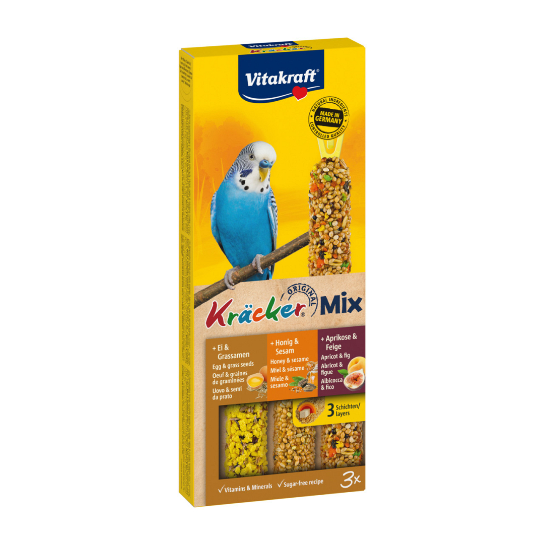 Vitakraft Kräcker Trio-Mix parkiet - ei/abrikoos/honing 3 st