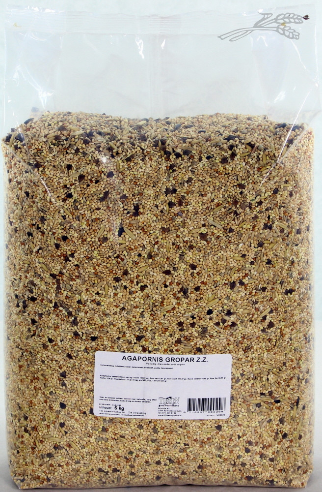 Agapornis - Grote Parkiet zonder Zonnepitten is een zaadmengeling voor agapornide en andere grote parkieten. De mengeling is een volledige voeding en bevat geen zonnepitten, waardoor het een lager vetgehalte heeft.