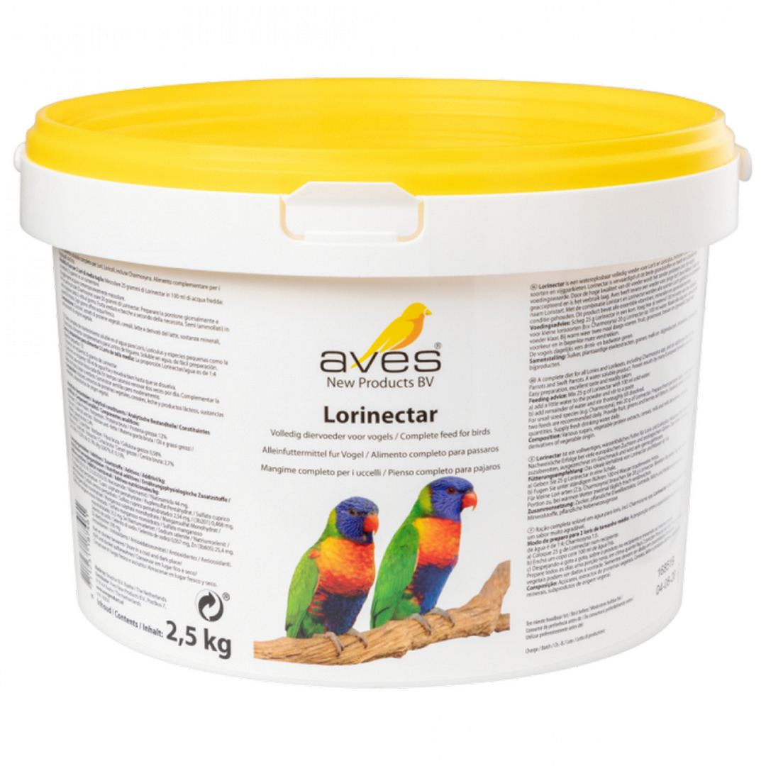 Lorinectar is vervaardigd uit de beste grondstoffen en heeft een uitstekende voedingswaarde. Door de hoge kwaliteit van dit voeder wordt het zonder probleem door de vogels geaccepteerd en is het verbruik laag. Aves heeft tevens een voeder voor jonge lori's beschikbaar onder de naam Aves Loristart. Met de combinatie Loristart en Lorinectar worden alle soorten Lori's gefokt en in uitstekende conditie gehouden. Aves Lorinectar bevat alle essentiële vitaminen, mineralen en sporenelementen.